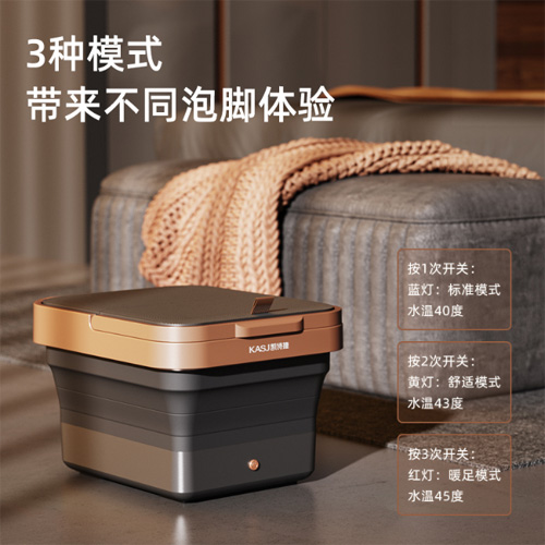 凯诗捷T1折叠泡脚桶,简便按键操作,按下按键的瞬间为你开启舒适的泡脚时光,K式循环加热,通过自吸泵促使水循环进入加热装置,大大提升加热效率,同时桶内水热的更加均匀。洗完直接提起到手,省心便捷。折叠设计,方便快捷,一体收纳不占空间,在不使用时可以灵活伸缩,收纳自如,藏进家里的角角落落,不影响整体家居的美观性。